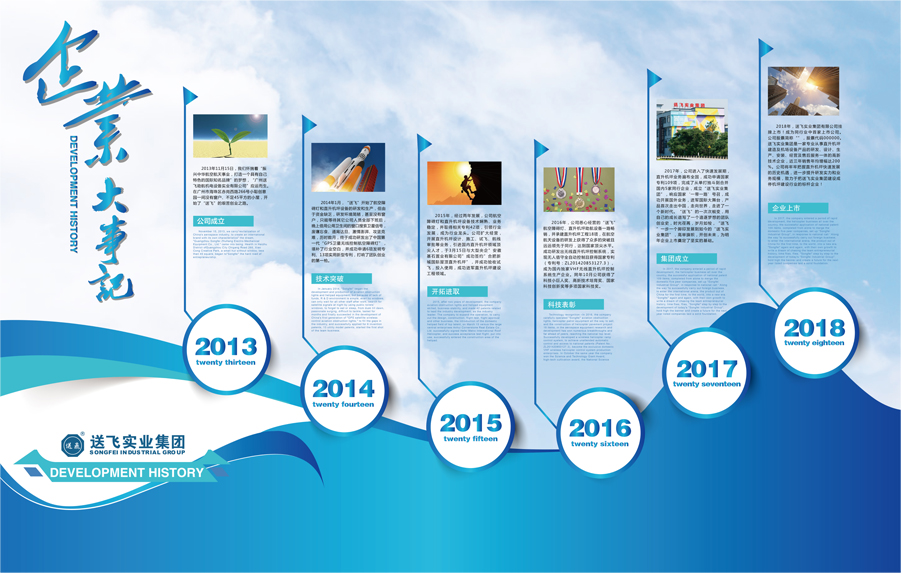 “送飛”團(tuán)隊從位于廣州市海珠區(qū)赤崗西路266號小聰創(chuàng)意園的一間不足45平米小屋開始創(chuàng)業(yè),懷揣著“振興中華航空航天事業(yè),打造一個具有自己特色的國際知名品牌”的夢想,“廣州送飛助航機電設(shè)備實業(yè)有限公司”應(yīng)運而生。創(chuàng)業(yè)初期由于資金缺乏,研發(fā)環(huán)境簡陋,甚至沒有窗戶,只能等待其它公司的人員全部下班后,晚上借用公用衛(wèi)生間的窗口搜索衛(wèi)星信號,廢寢忘食、通宵達(dá)旦、激情澎湃、攻堅克難,歷時數(shù)月終于成功研發(fā)出中國第一代“GPS衛(wèi)星無線控制航空障礙燈”和中國第一代“VHF無線控制直升機坪系統(tǒng)”,填補了行業(yè)空白,并成功申請實用新型專利13項、發(fā)明專利6項,打響了團(tuán)隊創(chuàng)業(yè)的第一槍。從幾十平的小屋到整層寫字樓;從產(chǎn)品研發(fā)生產(chǎn)、直升機坪專業(yè)設(shè)計施工到機場建設(shè)一體化服務(wù);從單打獨斗到兼并國內(nèi)5家同行業(yè)公司的“送飛實業(yè)集團(tuán)”。 送飛實業(yè)的一次次蛻變,用自己的成長譜寫了一個追逐夢想的團(tuán)隊創(chuàng)業(yè)史。時光荏苒、歲月如梭,送飛實業(yè)一步一個腳印發(fā)展到如今的“送飛實業(yè)集團(tuán)”。