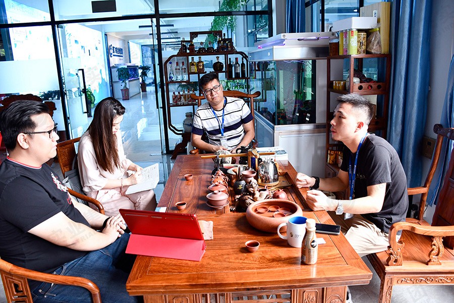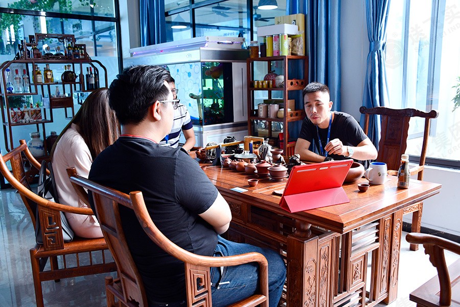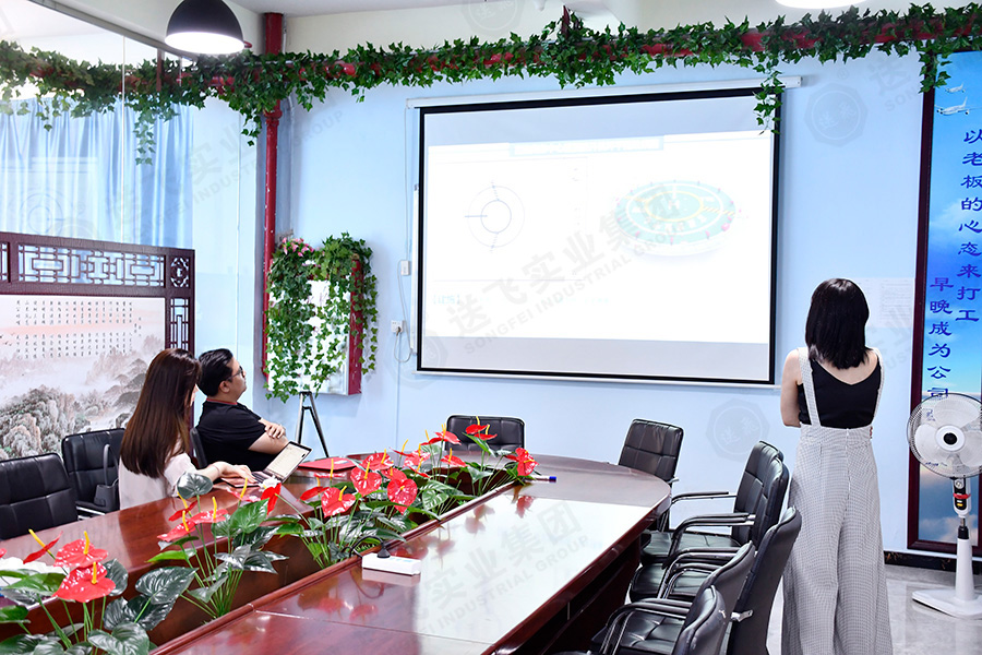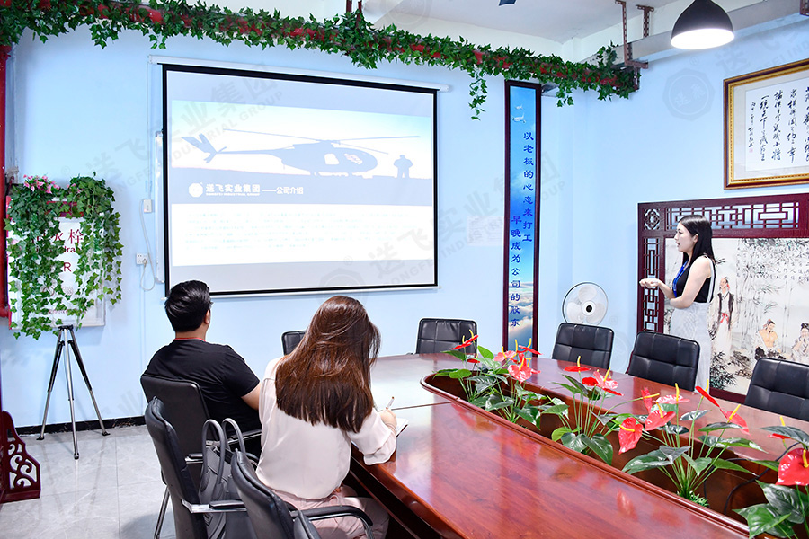 參觀結(jié)束后,在會(huì)議室,董事長(zhǎng)助理為廣英科技園的領(lǐng)導(dǎo)就此次項(xiàng)目進(jìn)行PPT講解。包括公司介紹、工程案例、設(shè)計(jì)詳解、施工流程。